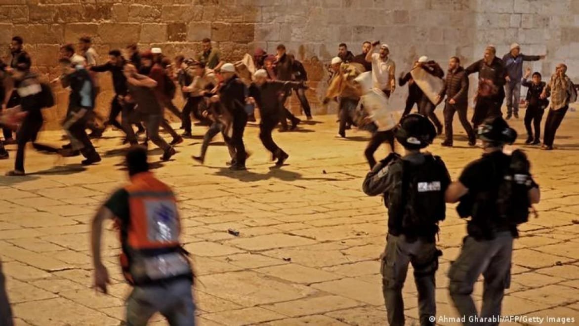 Insiden ini bereskalasi menjadi serangan terhadap jemaah yang tengah beribadah di Masjid Al-Aqsa dan pembubaran jemaah-jemaah lainnya di Jerusalem Timur, Jumat (7/5/2021). Tembakan peluru karet, gas air mata, serta granat kejut melukai jemaah yang bertahan di dalam masjid.