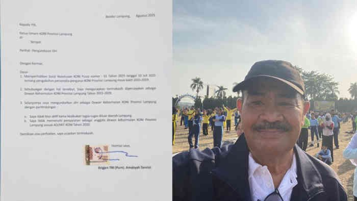 LAMPUNG – Brigjen TNI (Purn) Amalsyah Tarmizi memutuskan pamit dari jabatan prestisius nan simbolis sebagai anggota Dewan Kehormatan KONI Provinsi Lampung. Dalam surat pengunduran dirinya yang sah, mantan Danrem 043/Garuda Hitam ini menandai dua alasan utama: