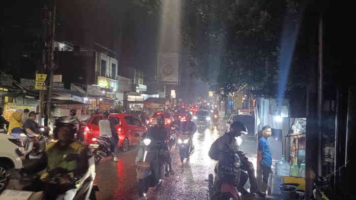 “Ini banjir musiman, kayak promo 12.12. Bedanya, ini nggak ada diskon, malah bawa kerugian,” canda pengendara sambil nekat menerobos banjir di Duta Indah, Jatimekar, Jatiasih.