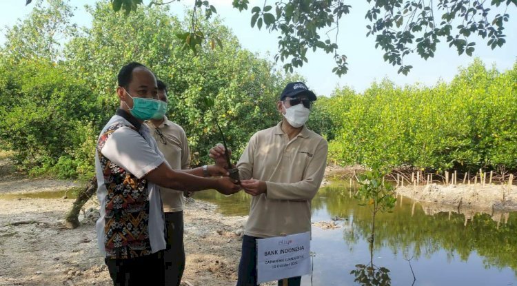 LAMSEL – Puluhan wartawan bersama Kantor Perwakilan Bank Indonesia (BI) Lampung menanam 100 bibit mangrove di kawasan Pantai Grand Elty, di Lampung Selatan.