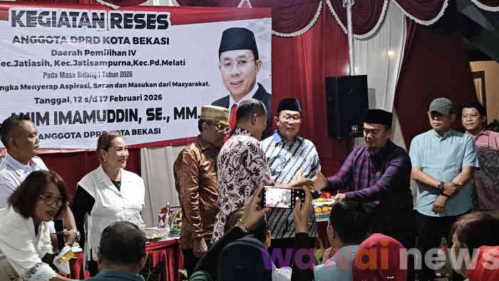 KOTA BEKASI — Reses pertama tahun 2026 Anggota DPRD Kota Bekasi dari PDI Perjuangan, Anim Imanuddin, di RW 10 Kelurahan Jatisari, Kecamatan Jatiasih, Senin (16/2) malam, berlangsung meriah. Ratusan warga tumpah ruah menghadiri agenda serap aspirasi tersebut sebagian ingin menyampaikan usulan, sebagian lagi tak menampik tergoda doorprize yang dibagikan.