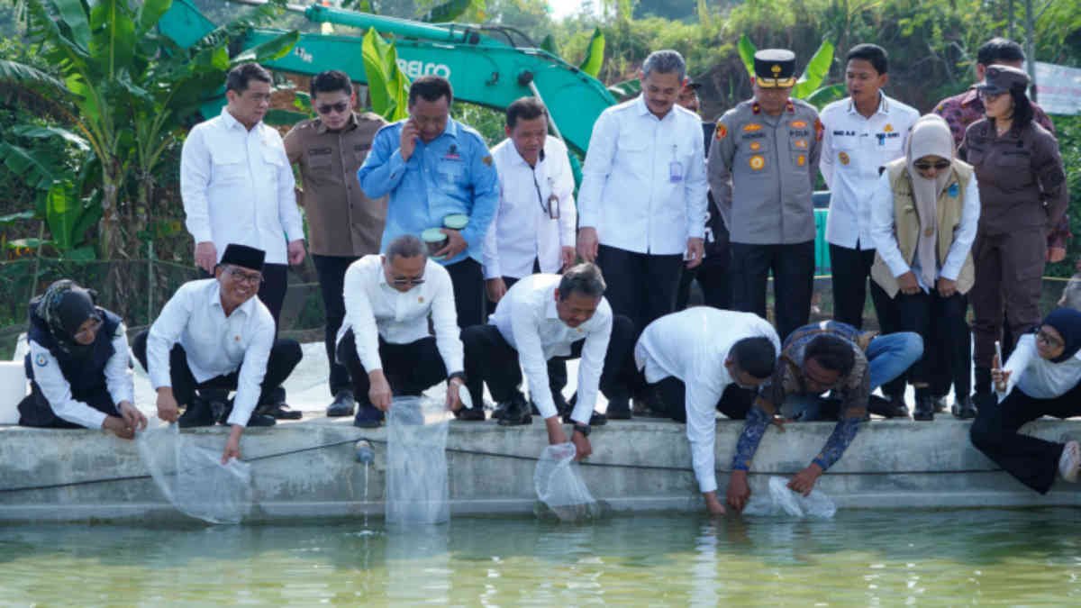 Ketiganya mencanangkan Desa Ekspor Ikan Mas Koki di Desa Kartasana, Kecamatan Pagelaran, Kabupaten Pandeglang, Kamis (8/5/2025)