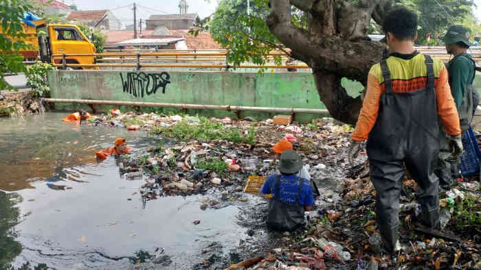 Seolah tak mau kalah cepat dengan algoritma Instagram, DLH langsung menurunkan tim pada Senin (29/9/2025) pagi. Pasukan Katak Orange diterjunkan untuk “menyelam” di antara kantong plastik, sandal jepit, dan sisa makanan yang menyumbat aliran air.