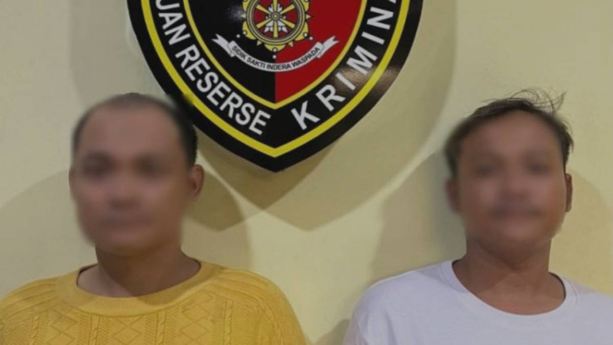 Tampang duo Preman Pasar Baru Kota Bekasi Diringkus Polisi dari Polsek Rawalumbu, 4 April 2025 setelah aksi palak Pedagang sayur diunggah di tik tok.
