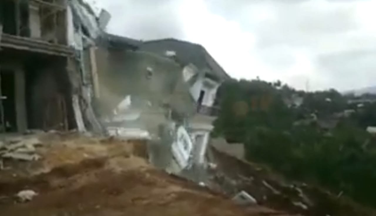 Diketahui bahwa lokasi rumah roboh itu berada di atas bukit di tepi jurang. Kemudian disebelah rumah yang roboh berdiri bangunan yang sedang dalam tahap renovasi.