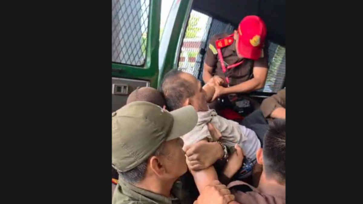 Dalam video yang beredar luas, IH terlihat menolak digiring ke mobil tahanan, meronta, membanting badan, dan membuat jaksa serta petugas kewalahan.