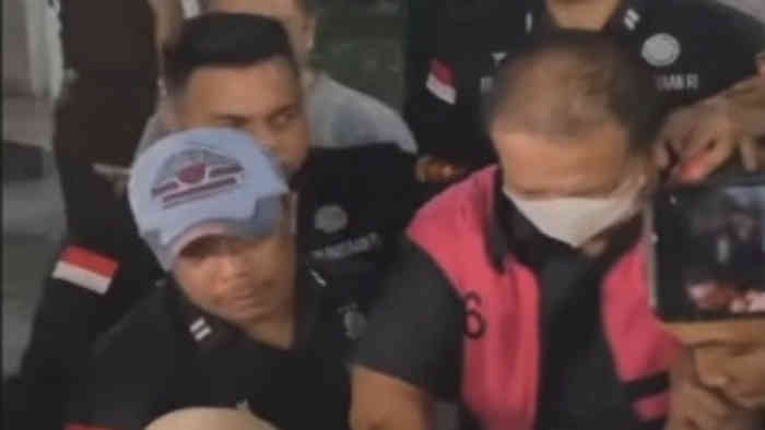 Keluar dari ruang pemeriksaan, Arinal tampak mengenakan rompi tahanan, tangan terborgol, masker menutup wajah, dan kepala tertunduk. Bukan lagi senyum pejabat, melainkan ekspresi yang lebih cocok untuk headline pagi.