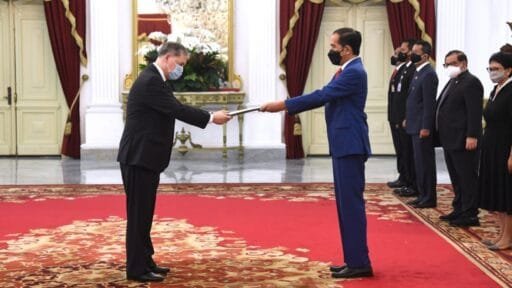 Penyerahan surat kepercayaan tersebut digelar di Ruang Kredensial, Istana Merdeka, Jakarta, pada Rabu, 1 September 2021.