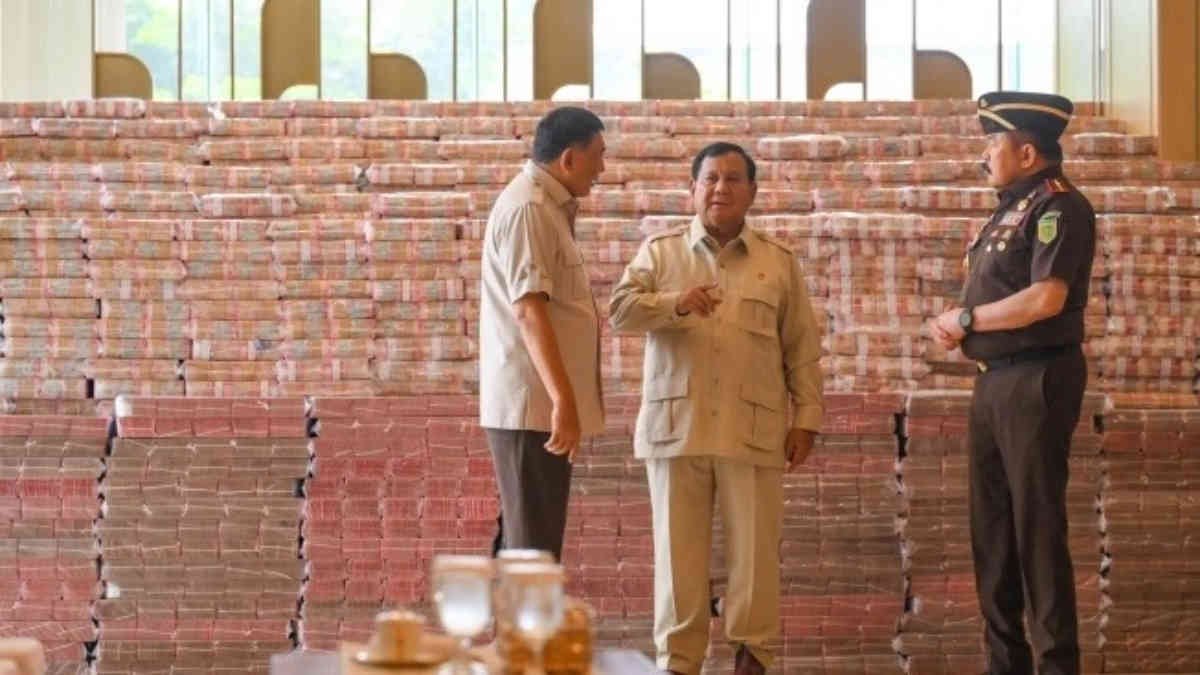 Presiden Prabowo Subianto hadir langsung menyaksikan simbol pemulihan keuangan negara terbesar dalam sejarah penegakan hukum ekonomi Indonesia. Di hadapan tumpukan uang yang nyaris menyerupai “monumen kapitalisme bertobat”, Prabowo menegaskan bahwa angka ini bukan sekadar nominal, tapi representasi dari peluang membangun negeri.