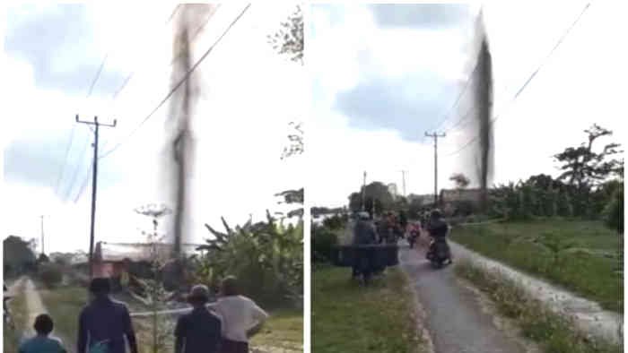 Warga yang sedang santai pun mendadak jadi kameramen dadakan, mengabadikan momen langka ini. Lampung tampaknya tak mau kalah eksotis dari Sidoarjo.