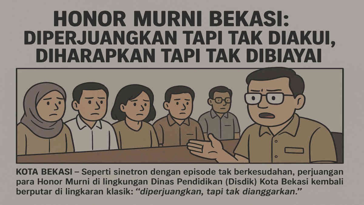 KOTA BEKASI – Ratusan tenaga Honor Murni di lingkungan Dinas Pendidikan Kota Bekasi kini sedang berada di persimpangan harapan dan kenyataan.