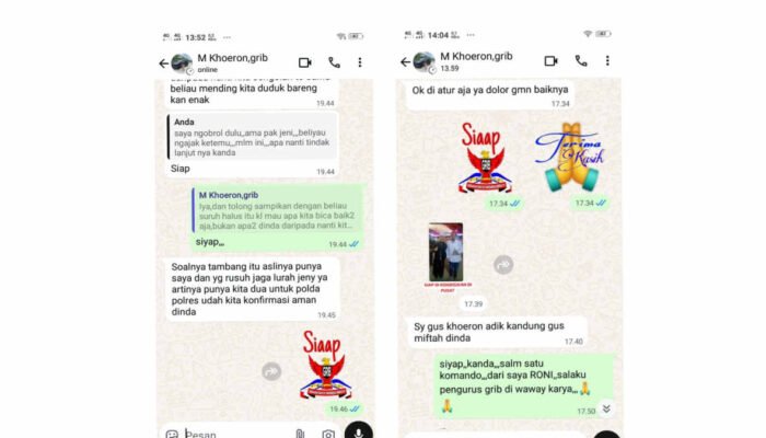Hal tersebut berdasarkan screenshot pecakapan WhatsApp antara M Khoerun dengan sesorang pengurus Ormas di wilayah Waway Karya yang didapat awak media Wawai News, Sabtu 17 Mei 2025.