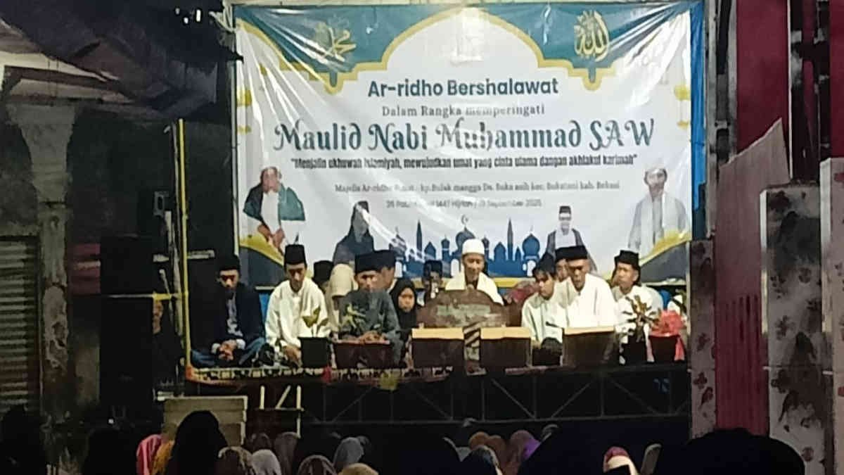 BEKASI – Ratusan jamaah Majelis Dzikir Ar Ridho Sukatani, Kabupaten Bekasi, tumpah ruah dalam perayaan Maulid Nabi Muhammad SAW yang digelar meriah pada Jumat, 19 September 2025.