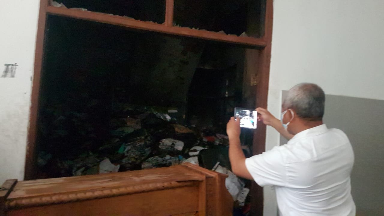 Wali Kota sempat membongkar pintu lantai 1 untuk melihat apa saja yang terdapat di dalamnya, terlihat berkas- berkas telah terbakar.