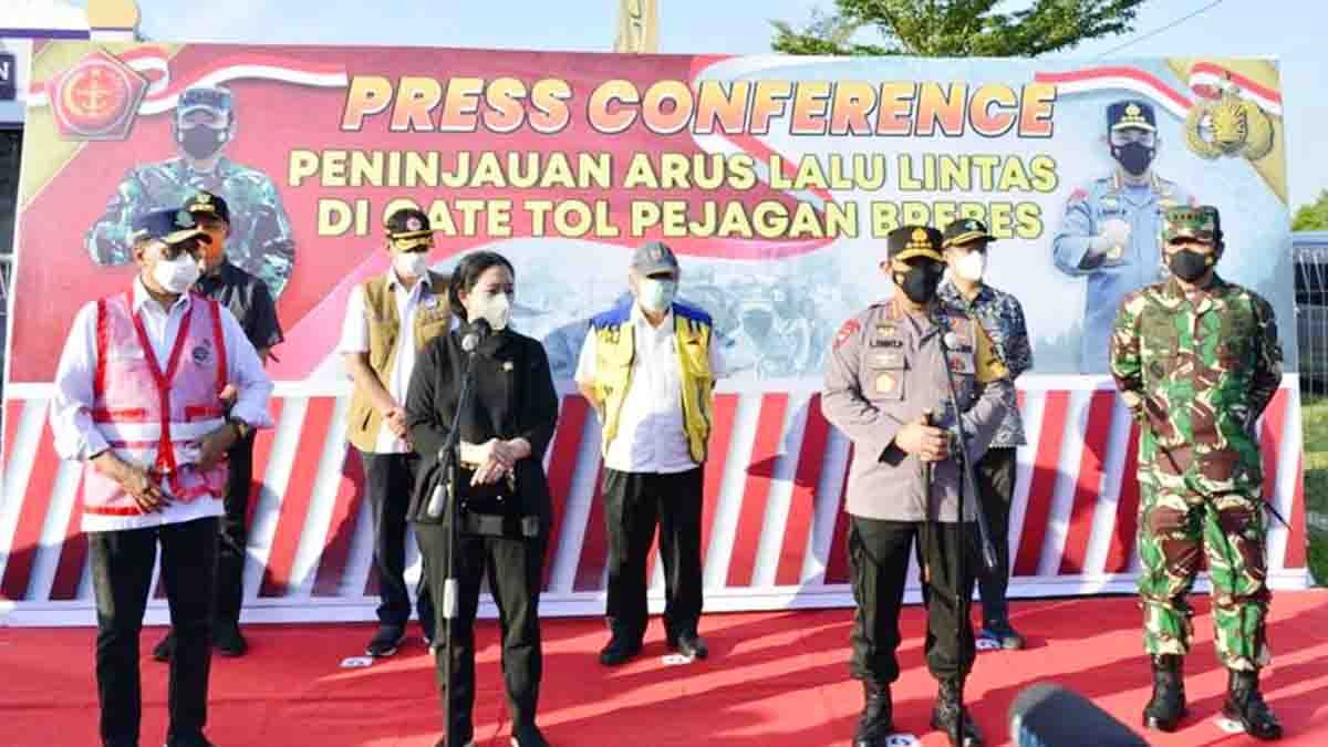 BREBES — Bersama Ketua DPR RI, Puan Maharani, Panglima TNI, Marsekal Hadi Tjahjanto, Menteri Kesehatan, Budi Gunadi Sadikin, Menteri Perhubungan, Budi Karya, dan Menteri PUPR, Basuki Hadimuljono, Kapolri, Jenderal Listyo Sigit Prabowo, melakukan peninjauan Operasi Ketupat 2021 di Pejagan, Brebes, Jawa Tengah, Minggu, (09/05/2021).