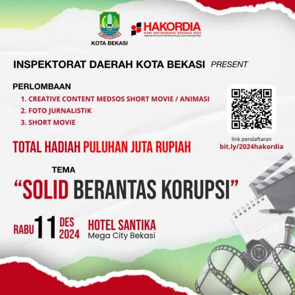 KOTA BEKASI – Pemerintah Kota (Pemko) Bekasi melalui Inspektorat Daerah Kota (Itko) menyelenggarakan lomba short movie dan foto jurnalistik dengan hadian total mencapai puluhan juta.