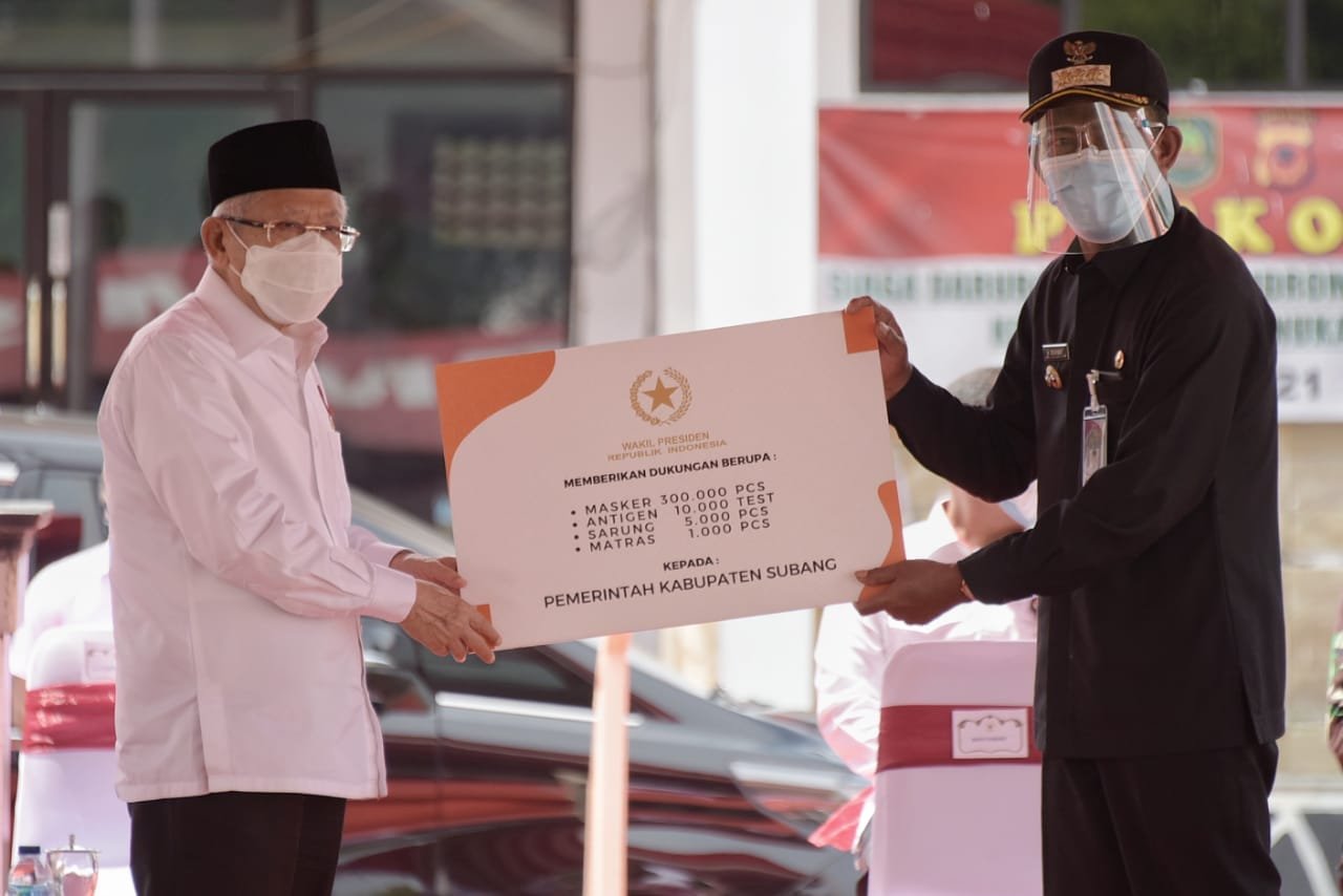 SUBANG – Wakil Presiden Ma’ruf Amin meninjau korban banjir di wilayah Kabupaten Subang dan Karawang Sabtu (13/2/2021).