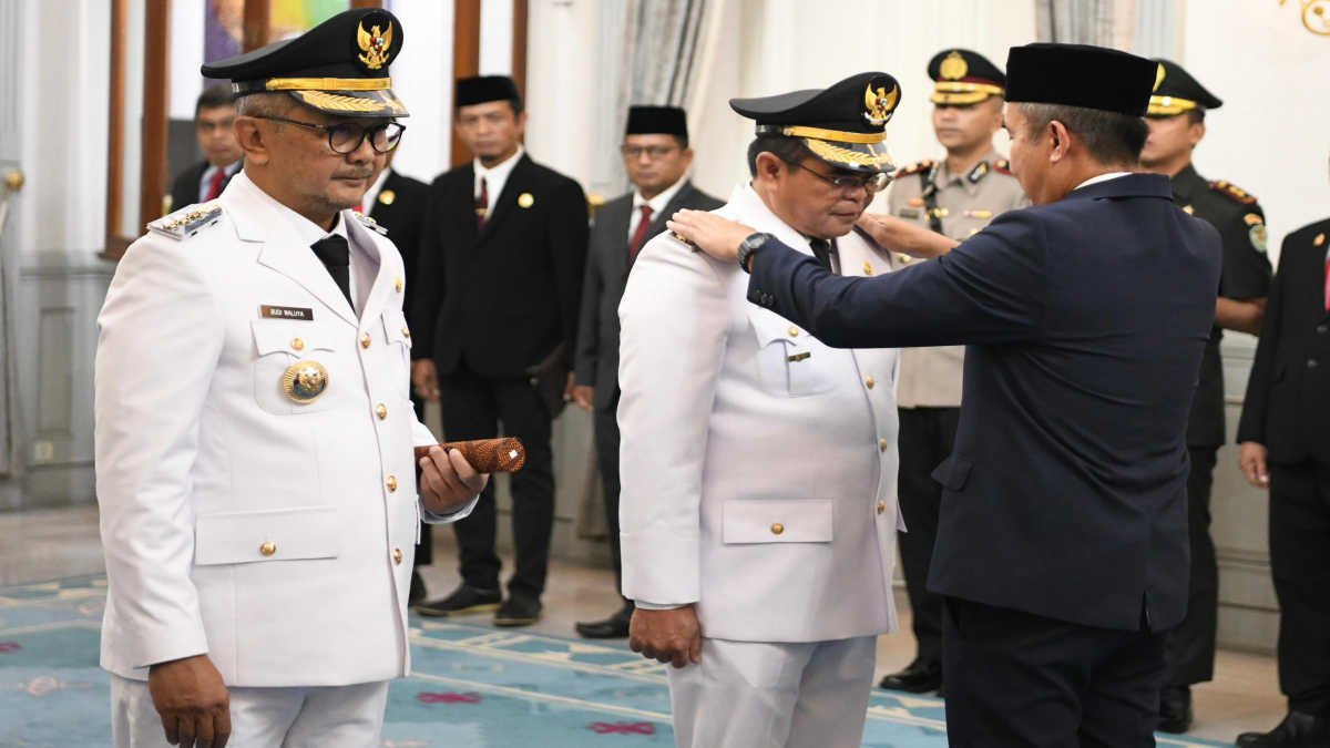 BANDUNG – Dua penjabat Bupati di wilayah Jawa Barat, dilantik oleh Pj Gubernur Bey Machmudin di Gedung Pakuan, Kota Bandung, Jumat (1/11/2024).