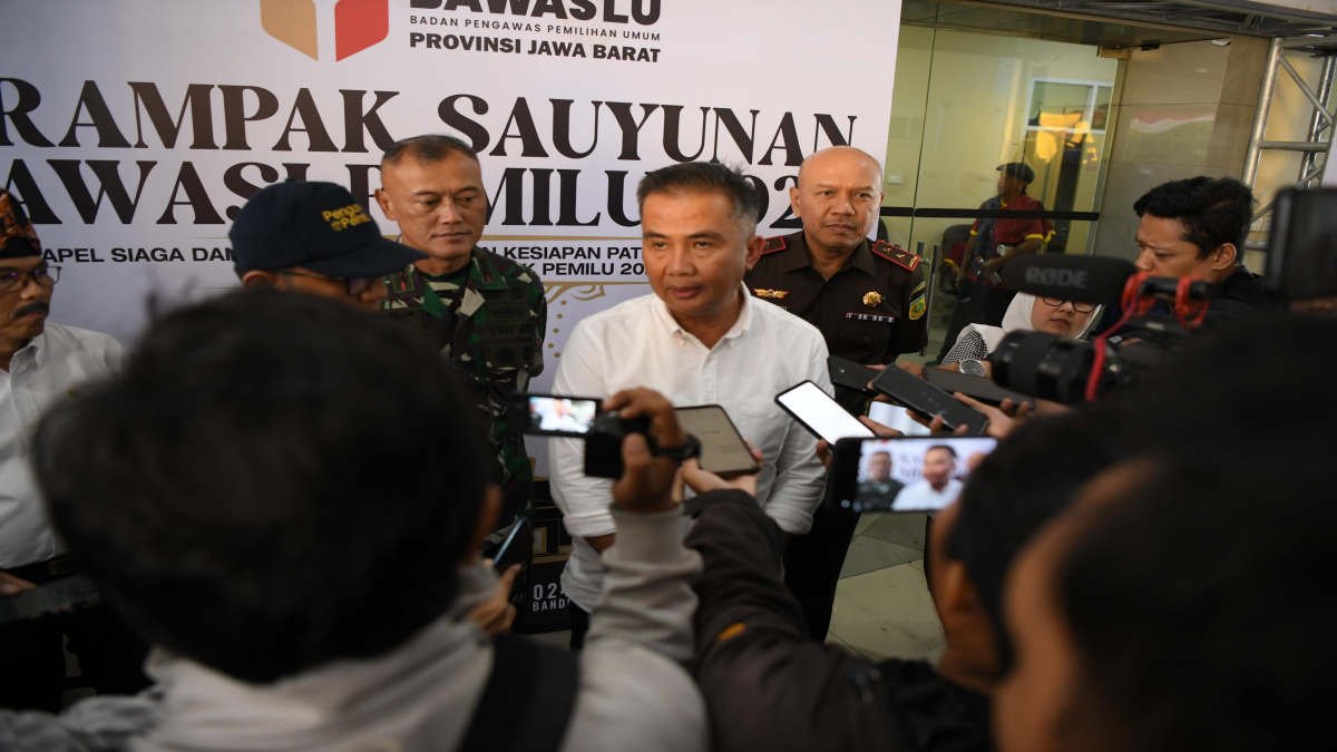 Hal itu dikemukakan Penjabat Gubernur Jawa Barat Bey Machmudin pada acara “Rampak Sauyunan Awasi Pemilu 2024” dalam rangka apel siaga dan sinergi pengawasan kesiapan patroli masa tenang dan doa bersama untuk Pemilu 2024 di Spot Jabar Arcamanik, Kota Bandung, Jumat (9/2/2024).