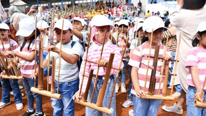 KOTA BANDUNG — Ribuan tangan, dari jemari mungil anak TK hingga tangan renta para lansia, kompak menggoyangkan angklung hingga menghasilkan denting bambu yang merayap memenuhi Stadion Universitas Pendidikan Indonesia, Minggu (23/11/2025).