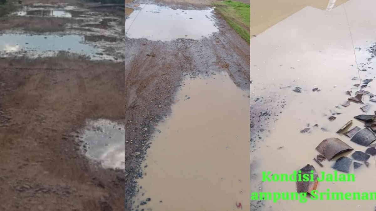 Selama lebih dari sepuluh tahun, jalan Srimenanti rusak tanpa perbaikan berarti. Aspal lenyap, lubang menganga, dan setiap kali hujan turun, warga bisa sekaligus berwisata “pancing lumpur.”