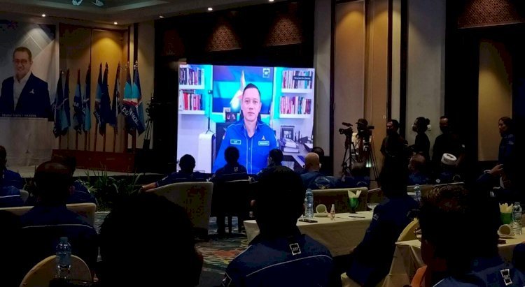 Lampung – Ketua Umum Partai Demokrat Agus Harimurti Yudhoyono ikut menyapa para peserta Musyawarah Daerah (Musda) V Demokrat Lampung di Hotel Sheraton, Bandar Lampung secara virtual, Senin (25/10).