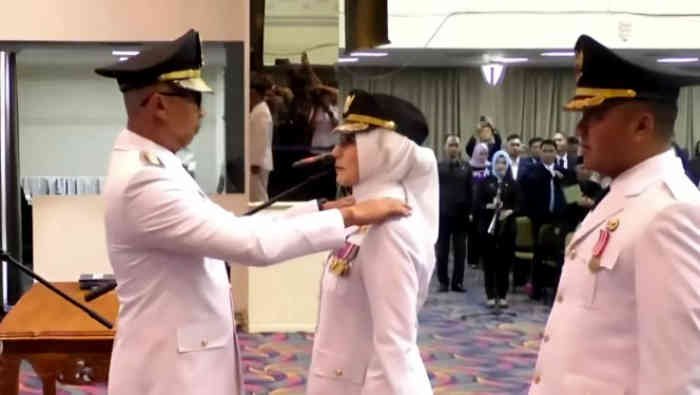 Prosesi pelantikan berlangsung khidmat. Dimulai dengan pembacaan Surat Keputusan Menteri Dalam Negeri, pengucapan sumpah jabatan, penandatanganan berita acara, pemasangan tanda pangkat dan jabatan, hingga penyerahan keputusan Mendagri.