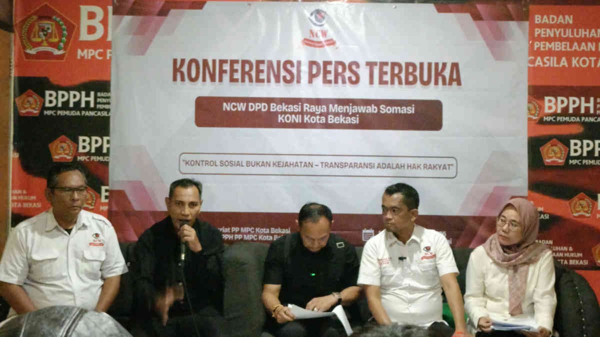 Dalam konferensi pers yang digelar di ruang BPPH Sekretariat MPC Pemuda Pancasila (PP) Kota Bekasi, Ketua NCW Bekasi Raya, Herman menegaskan, tidak gentar menghadapi somasi KONI.