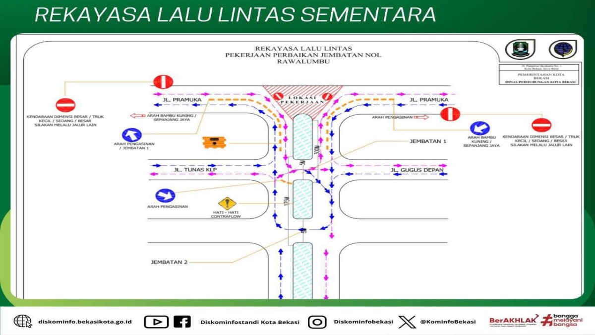 Menindaklanjuti hal tersebut, Dinas Perhubungan (Dishub) Kota Bekasi akan menerapkan rekayasa lalu lintas sementara di kawasan terdampak guna meminimalisir gangguan arus kendaraan. Salah satu skema yang diterapkan adalah perubahan sistem lalu lintas dari satu arah (one way) menjadi dua arah, yang berlaku hingga Jembatan Satu, Perumahan Rawalumbu.