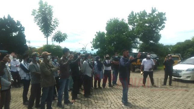 Puluhan massa tersebut tergabung dari masyarakat Pekon Kuripan dan Pekon Antar Brak Kecamatan Limau, Tanggamus serta Gabungan dari sejumlah LSM yang ada di Kabupaten Tanggamus.