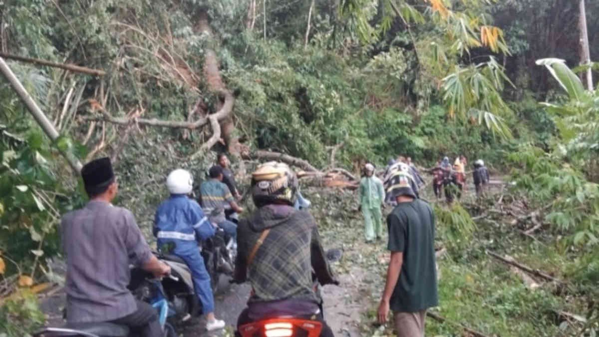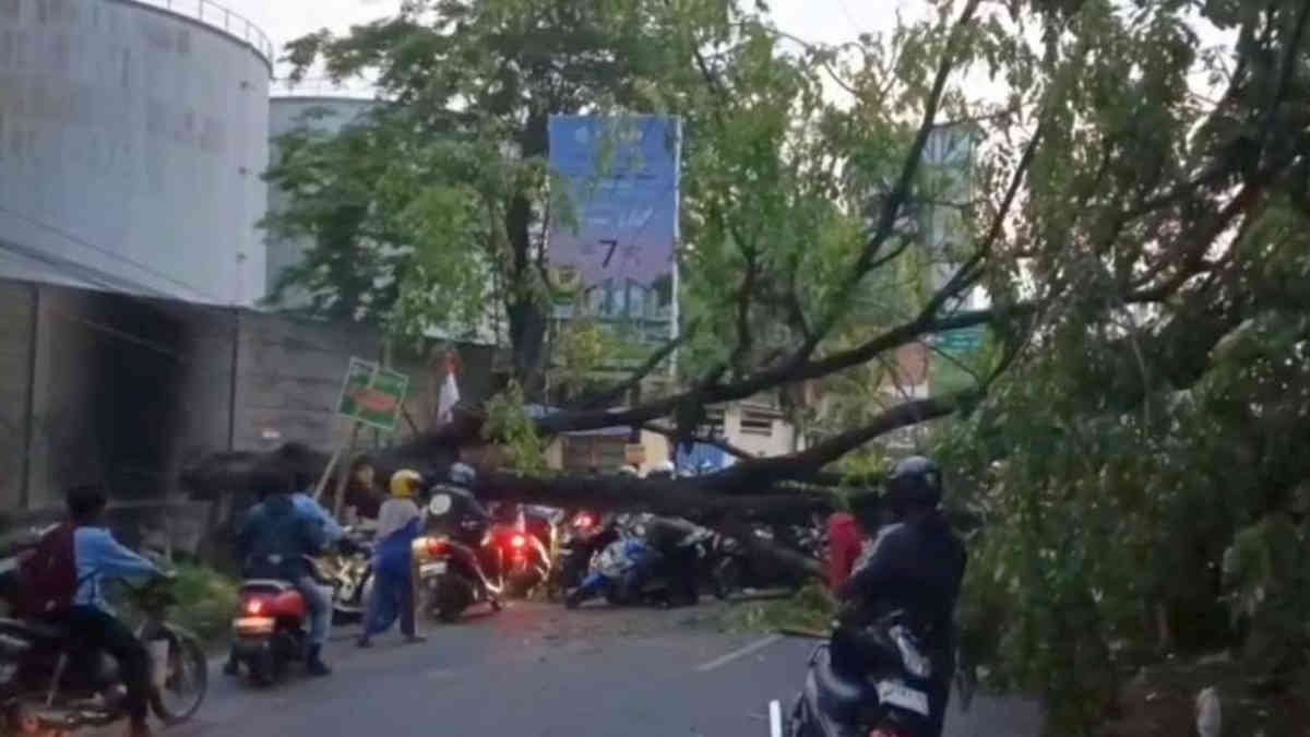 Pohon berukuran besar itu tumbang menutup hampir seluruh ruas jalan penghubung antara Wisma Asri dan Pondok Ungu, membuat lalu lintas macet total. Pengendara mobil hanya bisa gigit jari, sementara pemotor harus berjuang menembus celah sempit di antara batang dan ranting seperti peserta lomba ketangkasan.
