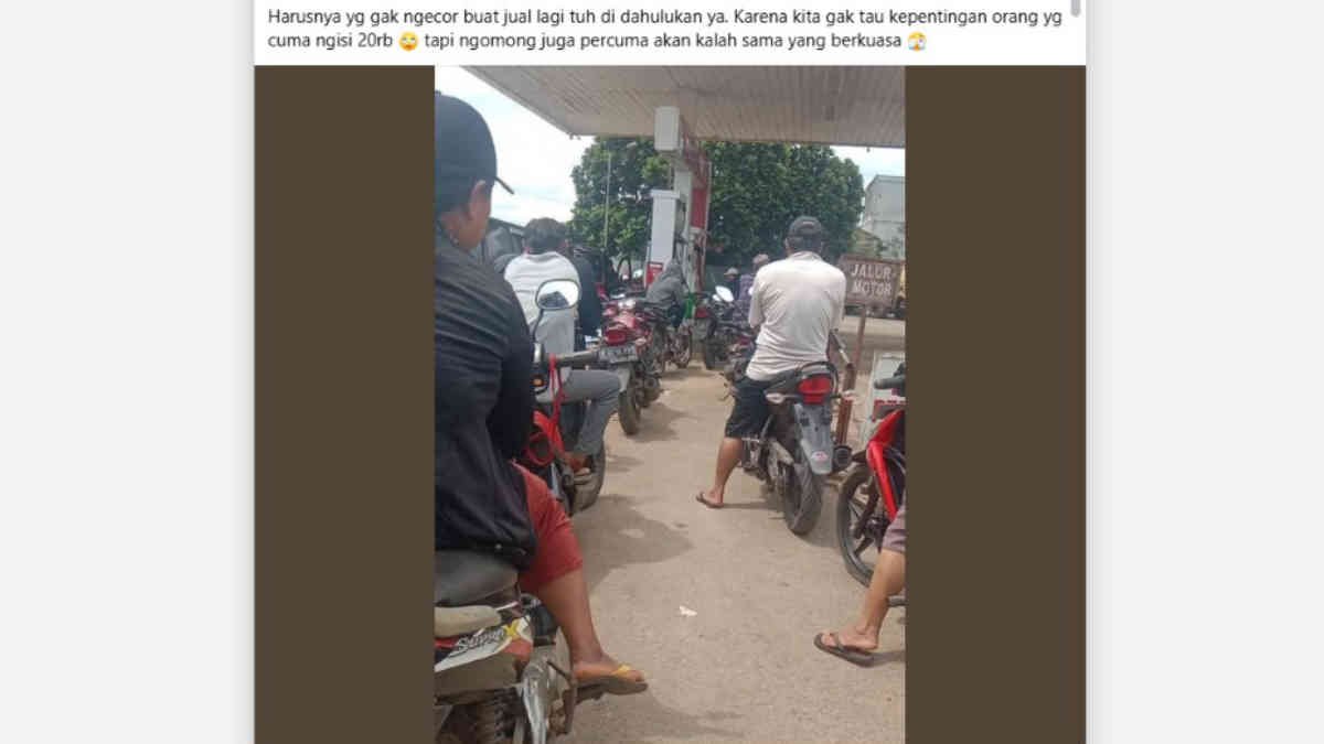 “Kadang cuma mau isi Rp20 ribu, tapi nungguannya kayak mau beli saham Pertamina,” keluh seorang warganet, disambut emoji tawa getir dari warga lain dalam komentar status salah satu warga setempat melalui akun FB miliknya.