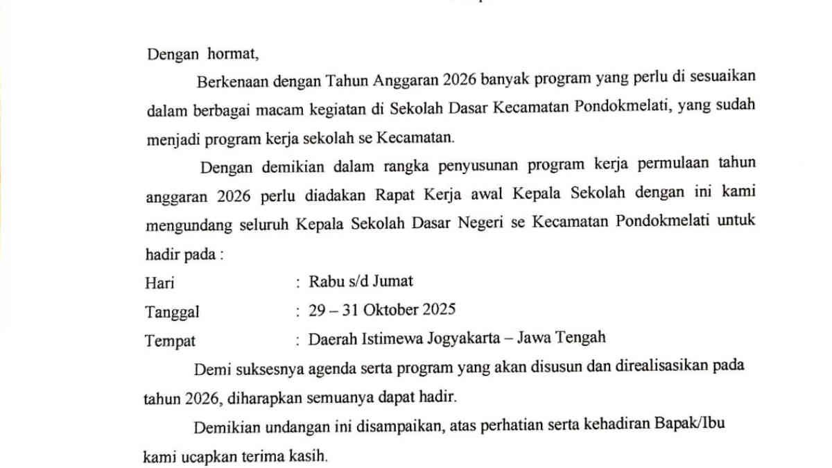 KOTA BEKASI — Di tengah jam efektif sekolah dan semangat efisiensi anggaran, puluhan kepala sekolah se-Kecamatan Pondokmelati, Kota Bekasi, justru terlihat sibuk bukan di ruang kelas atau rapat dinas, melainkan di Yogyakarta.