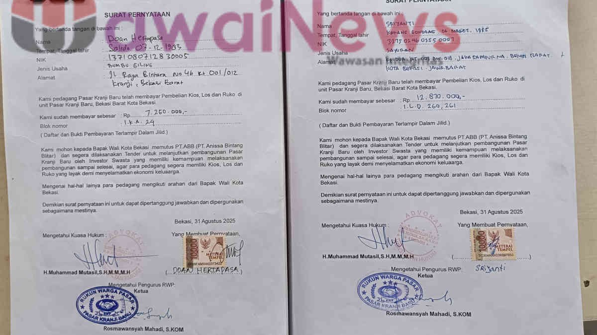 Surat Pernyataan Pedagang Pasar Kranji Baru, Bekasi
