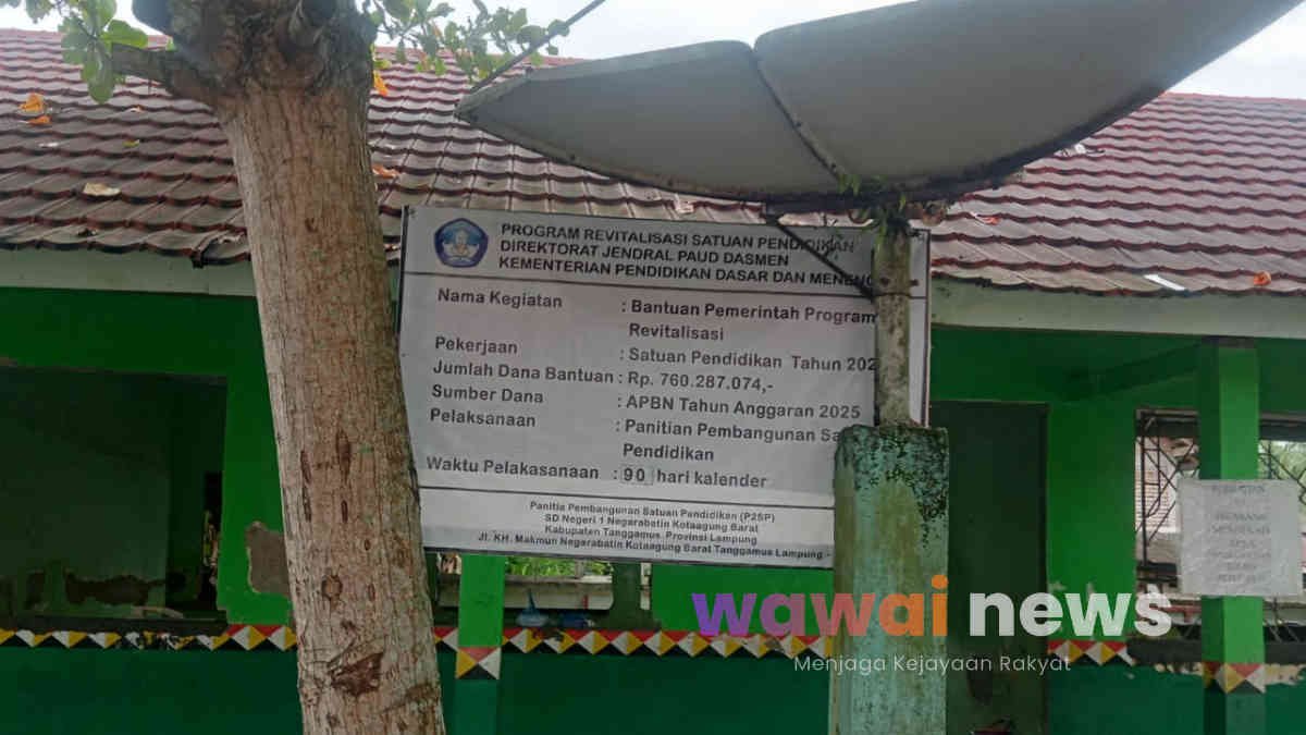 TANGGAMUS – Revitalisasi SDN 1 Negara Batin, Kecamatan Kota Agung Barat, Kabupaten Tanggamus, yang menelan anggaran APBN sebesar Rp760.287.074, kini menjadi bahan pembicaraan hangat. Bukan hanya karena nilainya yang besar, tetapi karena banyak hal “terasa tidak kelihatan” bahkan oleh para guru di sekolah itu sendiri.