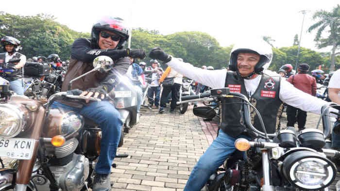 Konvoi ini bukan sekadar Sunmori (Sunday Morning Ride), tapi juga parade merah putih. Setiap motor dipasangi bendera yang dibagikan langsung oleh dua pejabat paling sibuk di bumi patriot itu.