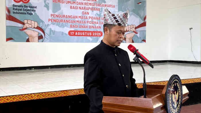 Kalapas Kotaagung Andi Gunawan membacakan sambutan Menteri Imigrasi dan Pemasyarakatan, Agus Andrianto, yang menekankan bahwa pemberian remisi bukanlah hadiah semata, melainkan bentuk apresiasi negara atas perubahan sikap dan tekad warga binaan dalam memperbaiki diri.