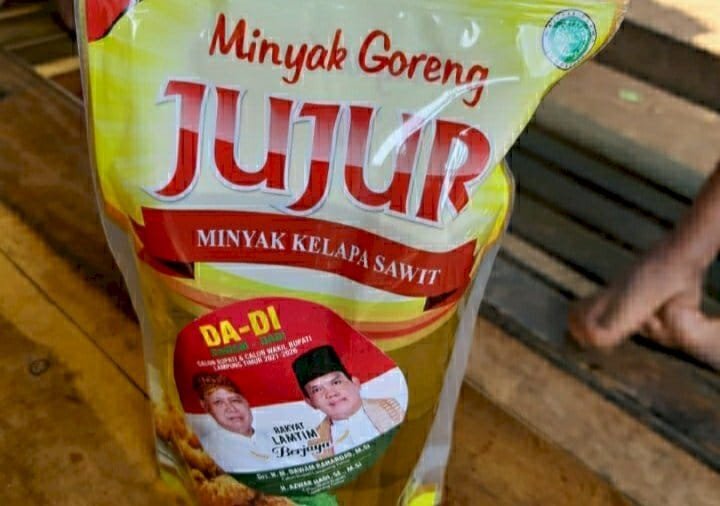 Di Kabupaten Lampung Tengah, ada minyak goreng yang kemasannya bergambar pasangan bakal calon kepala daerah Musa-Dito dengan tagline: Rakyat Lamteng Berjaya.
