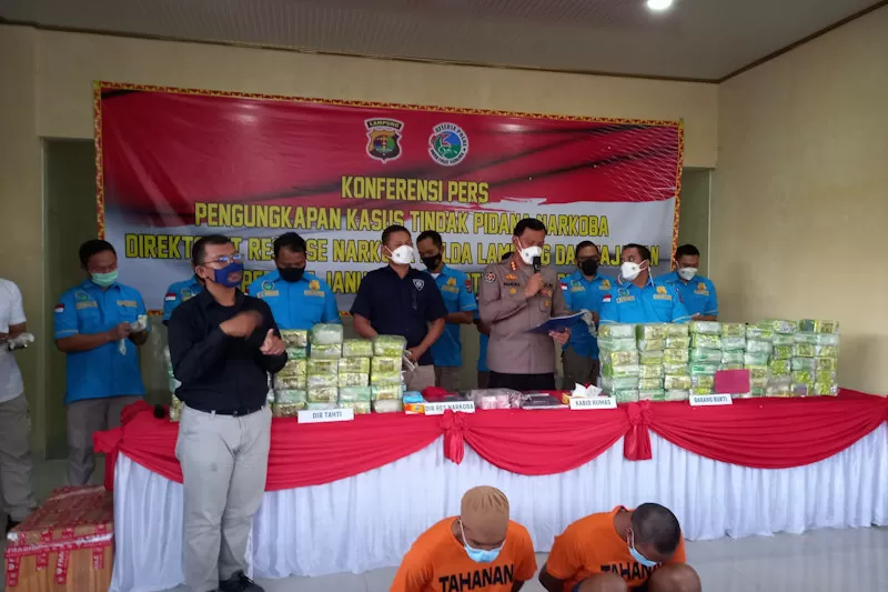 “Kurun waktu sembilan bulan berhasil menyita 284,974 Kg Ganja, 227.34 Kg Sabu, untuk ekstasi ada dua yakni Ekstasi bubuk sebesar 121 gram dan ekstasi butir sebanyak 18.328, serta mengamankan uang tunai sebesar 221.434.000,”ungkap Kabid Humas Polda Lampung, Kombes Zahwani Pandra Arsyad, Rabu (22/9/2021)