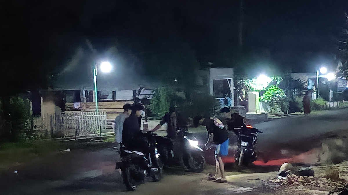 Kecelakaan tunggal kembali terjadi di jalan rusak sisa proyek gorong-gorong di tengah desa Gunung Sugih Besar, Sekampung Udik, Lampung Timur pada Kamis 2 Januari 2024 malam tadi- foto Ahmad Rozali