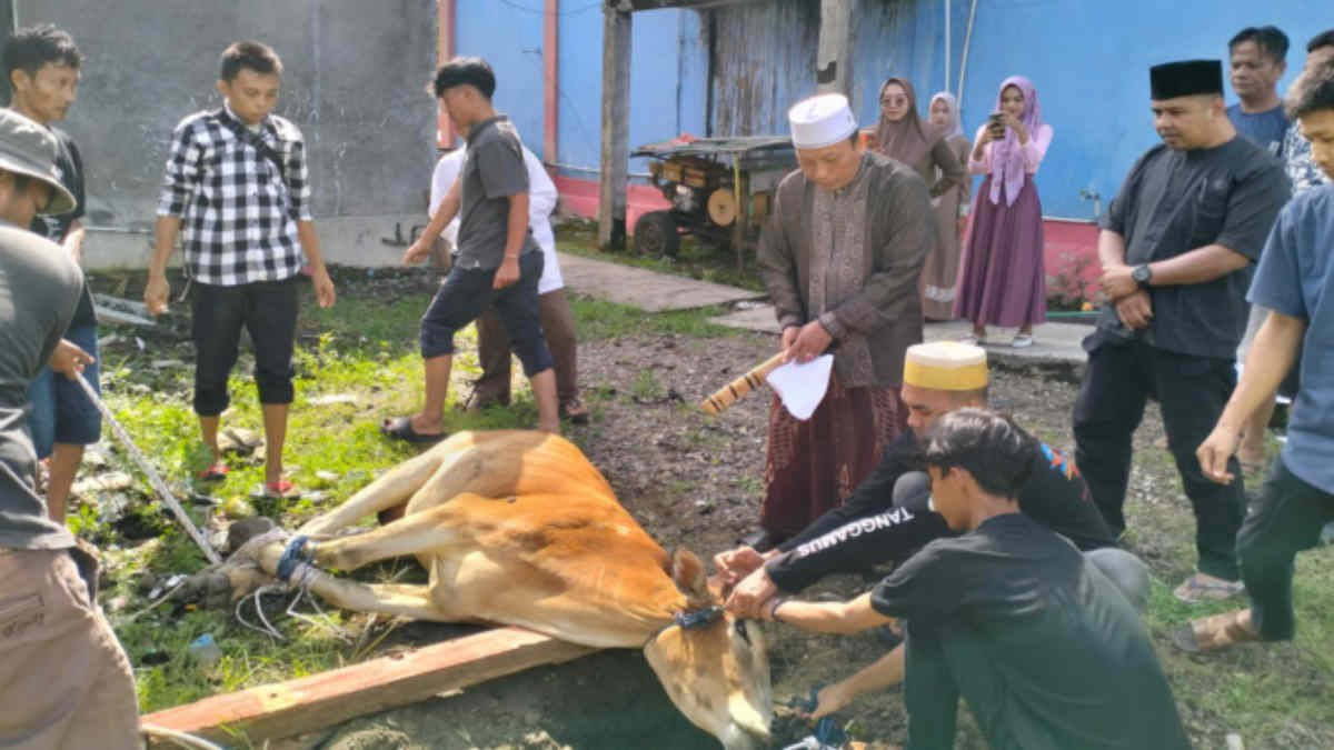 Ketua STEBI Tanggamus, Riki Renaldo, M.T.I., menyampaikan rasa syukur dan apresiasi atas partisipasi seluruh pihak pada pelaksanaan penyembelihan seekor sapi.
