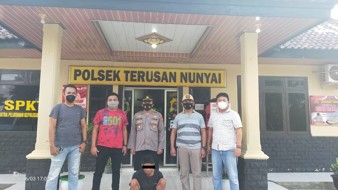 LAMTENG – MA alias Toni (23) warga Gang Warit, Kampung Gunung Agung, Terusan Nunyai, Lampung Tengah, menyerahkan diri ke Polsek setempat. Ia diantar keluarganya pada Kamis (3/6/2021).