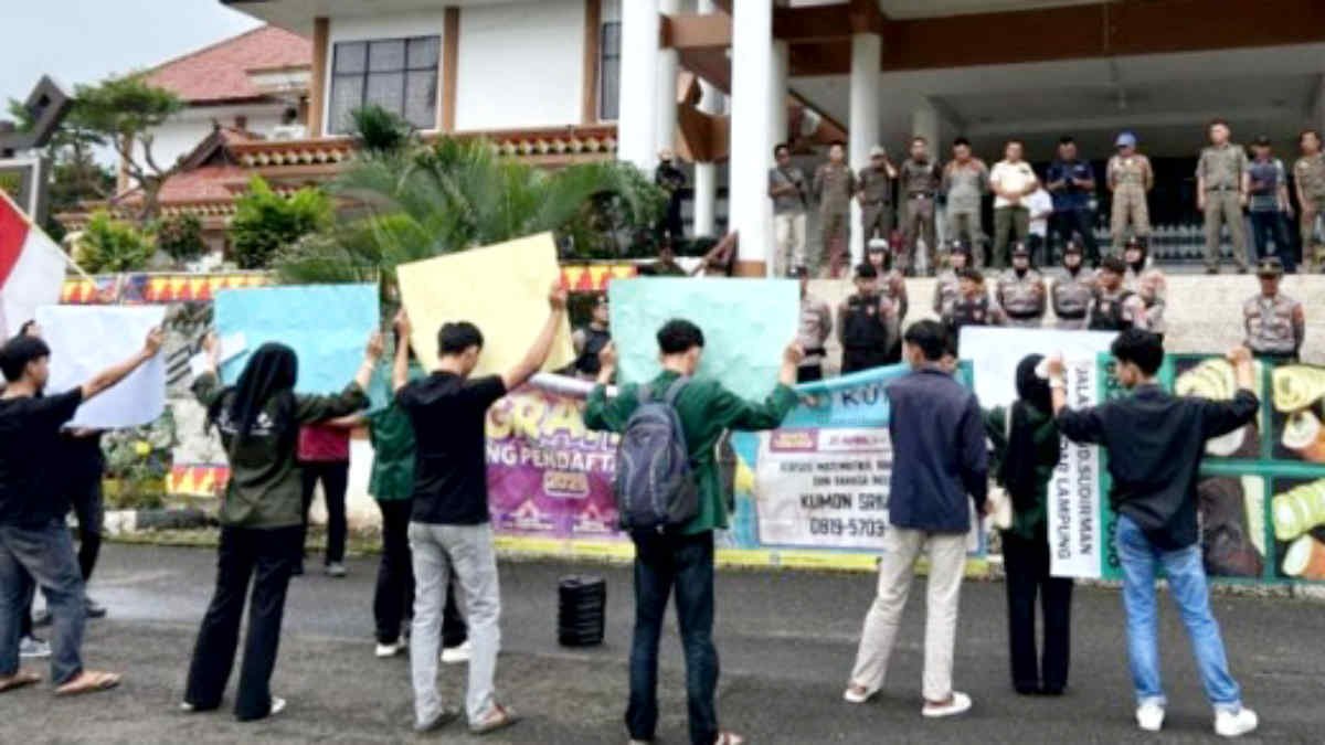 TANGGAMUS – Aksi unjuk rasa kembali menggema di halaman Kantor Pemkab Tanggamus. Kali ini giliran Gerakan Pemuda Nusantara (GPN) Tanggamus menggelar demo yang tidak biasa, dengan membawa “nasi bungkus anggaran“, poster bertuliskan “Sekda Lama, Masalah Baru“, hingga iring-iringan bertema “pesta pandemi”, pada Kamis 31 Juli 2025.