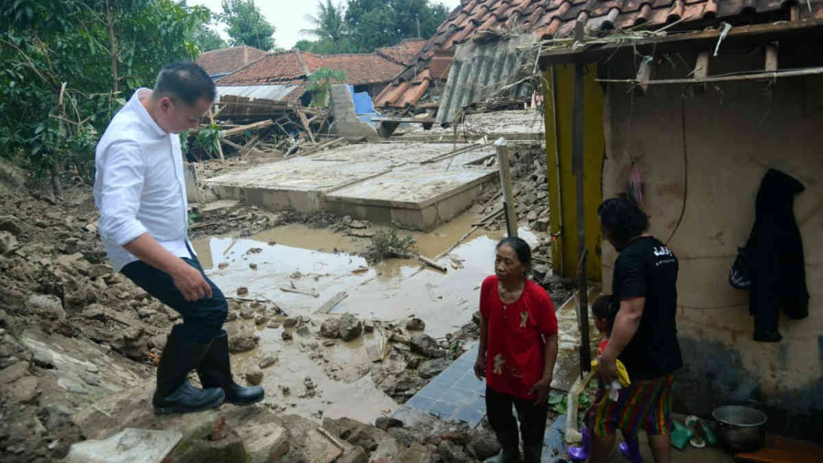 Diketahui meninjau lokasi banjir di Dusun Leuwiawi, Desa/Kecamatan Ujungjaya, Kabupaten Sumedang, Selasa (13/2/2024).