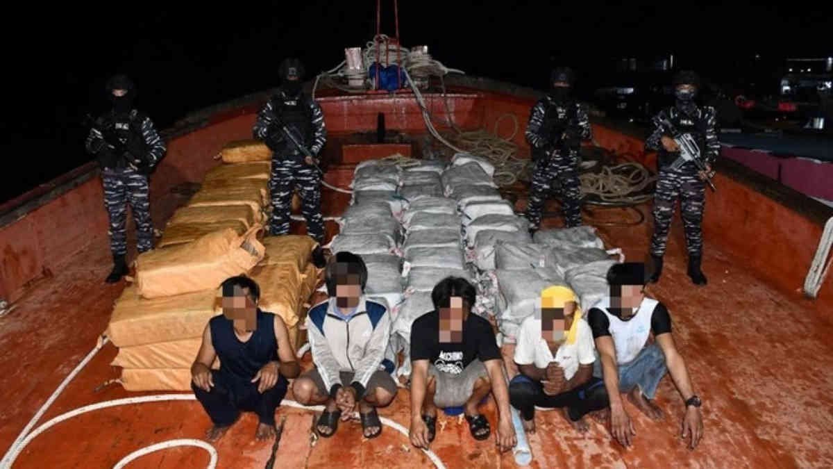 Dari pengamanan tersebut lima kru kapal berkewarganegaraan asing yakni dari Thailand dan Myanmar berhasil ringkus dengan total barang bukti mencapai 1,9 ton narkoba jenis sabu dan kokain.