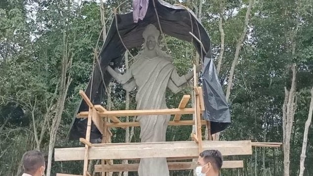 TUBA – Sejumlah tokoh adat menolak berdirinya patung Dewi Sri di Kampung Paduan Rajawali Kecamatan Meraksa Aji, Tulang Bawang. Karena dianggap merusak kearifan lokal di wilayah setempat. Kamis (18/11/21).