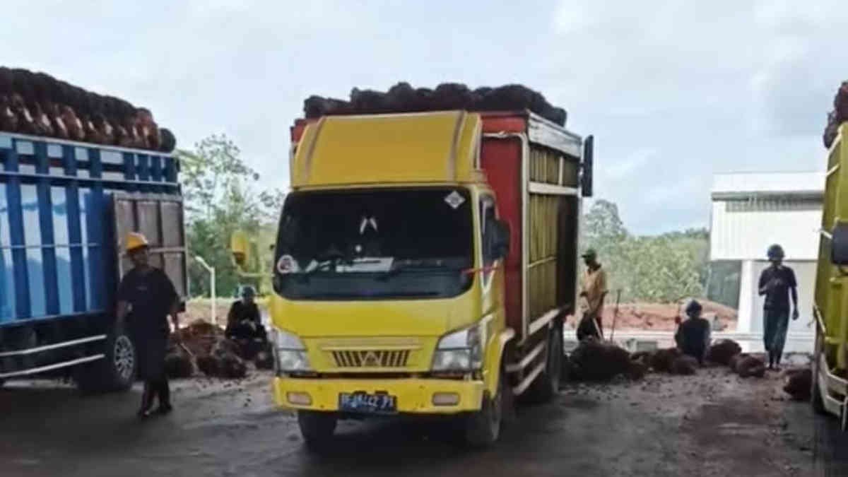 Penampakan aktivitas bongkar muat dari mobil truk muatan tandan sawit di PSM 2, Desa Gunung Agung, Sekampung Udik, Lampung Timur - foto doc Jali