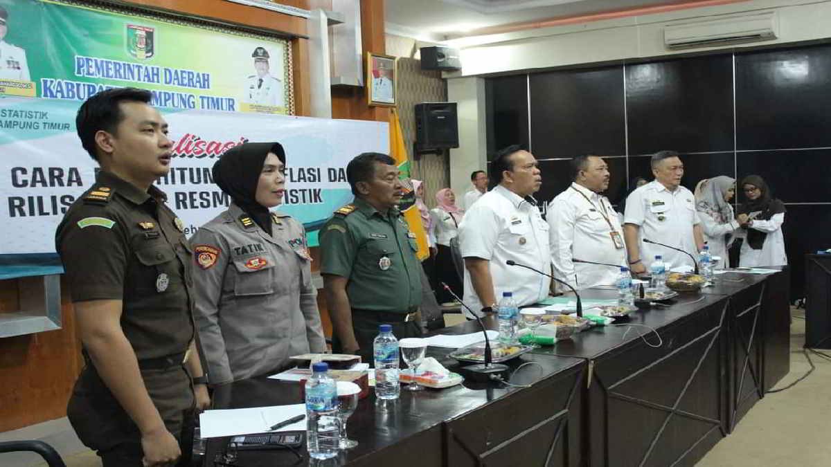 LAMPUNG TIMUR – Wakil Bupati Lampung Timur, Azwar Hadi pimpin rapat koordinasi inflasi dan sosialisasi tata cara perhitungan inflasi serta rilis berita resmi Statistik, di Aula Utama Setdakab Lamtim, Kamis 1 Ferbruari 2024.