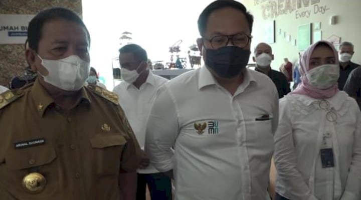 LAMSEL – Wakil Menteri (Wamen) BUMN II Kartika Wirjoatmodjo meninjau persiapan kawasan pariwisata terpadu Bakauheni Harbour City, Lampung Selatan. Rencananya, Pemprov Lampung membangun kawasan wisata ini selama empat tahun.