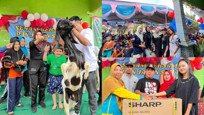Usai berkeringat, warga langsung dihibur dengan doorprize yang bikin mata terbelalak, mulai dari kipas angin, kulkas, mesin cuci, sampai hadiah utama berupa seekor kambing. Entah untuk diternak atau langsung jadi sate, tergantung pemenang.